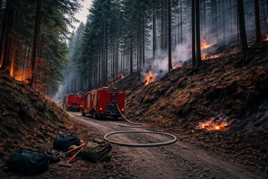 Un incendiu de vegetație se manifestă în zona Pârâul Muncelului, din comuna Ieud, județul Maramureș, solicitând intervenția operațională a trupelor de pompieri pentru localizarea și lichidarea focului. Focul afectează vegetația uscată și litierea pădurii, iar intervenția este îngreunată de configurația terenului, care este greu accesibil și nu permite deplasarea facilă a autospecialelor.